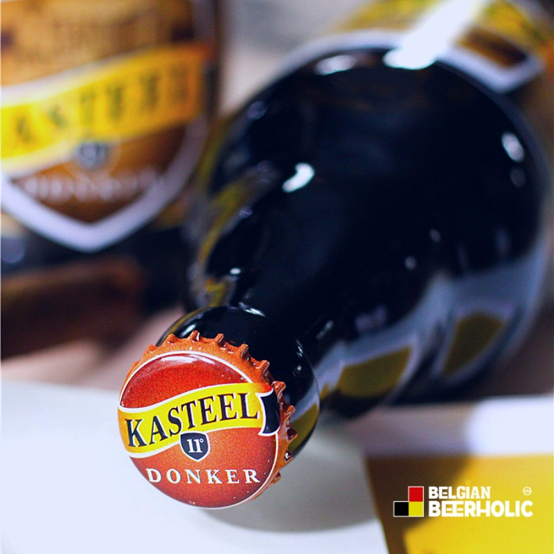 Mô tả hương vị | Flavour: Bia đen Bỉ Kasteel Donker là một thành viên trong gia đình Quadrupel của Bỉ, được lấy cảm hứng từ một loại bia Thầy Tu được ủ tại một tu viện ở Hà Lan - La Trappe Quadrupel. Đây là một loại bia mạnh, với đầy đủ các vị: Từ ngọt cho đến đắng; một dòng bia nâu đen đầy hấp dẫn với vị mạch nha chiếm hoàn toàn ưu thế, nó sẽ xâm chiếm khắp vòm họng của bạn, nhấn nhá thêm một chút caramel, café và sô cô la đến từ lúa mạch rang khiến cho việc thưởng thức bia đen Bỉ Kasteel Donker càng trở nên thi vị.